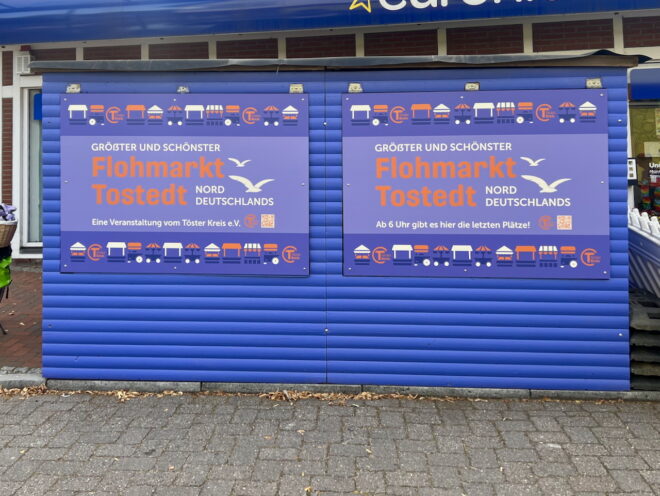 Lila ist die Erkennungsfarbe für den Flohmarkt Tostedt. Was liegt da näher, als die Infobude mit Lila zu streichen! Die Männer mussten sich erst daran gewöhnen, die Frauen fanden es auf Anhieb richtig toll.